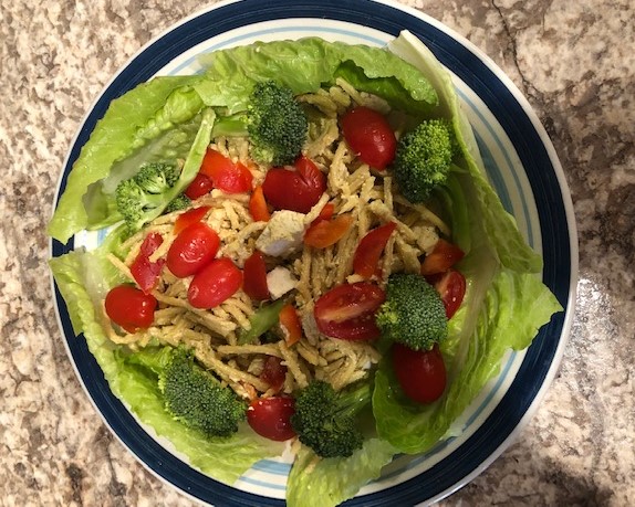 - Garnish with grape tomatoes, chopped broccoli and lettuce.