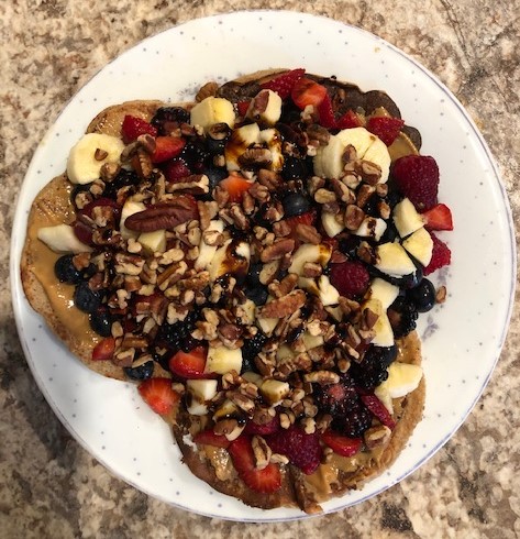 - Place 3 crepes on a breakfast plate, cover with peanut butter