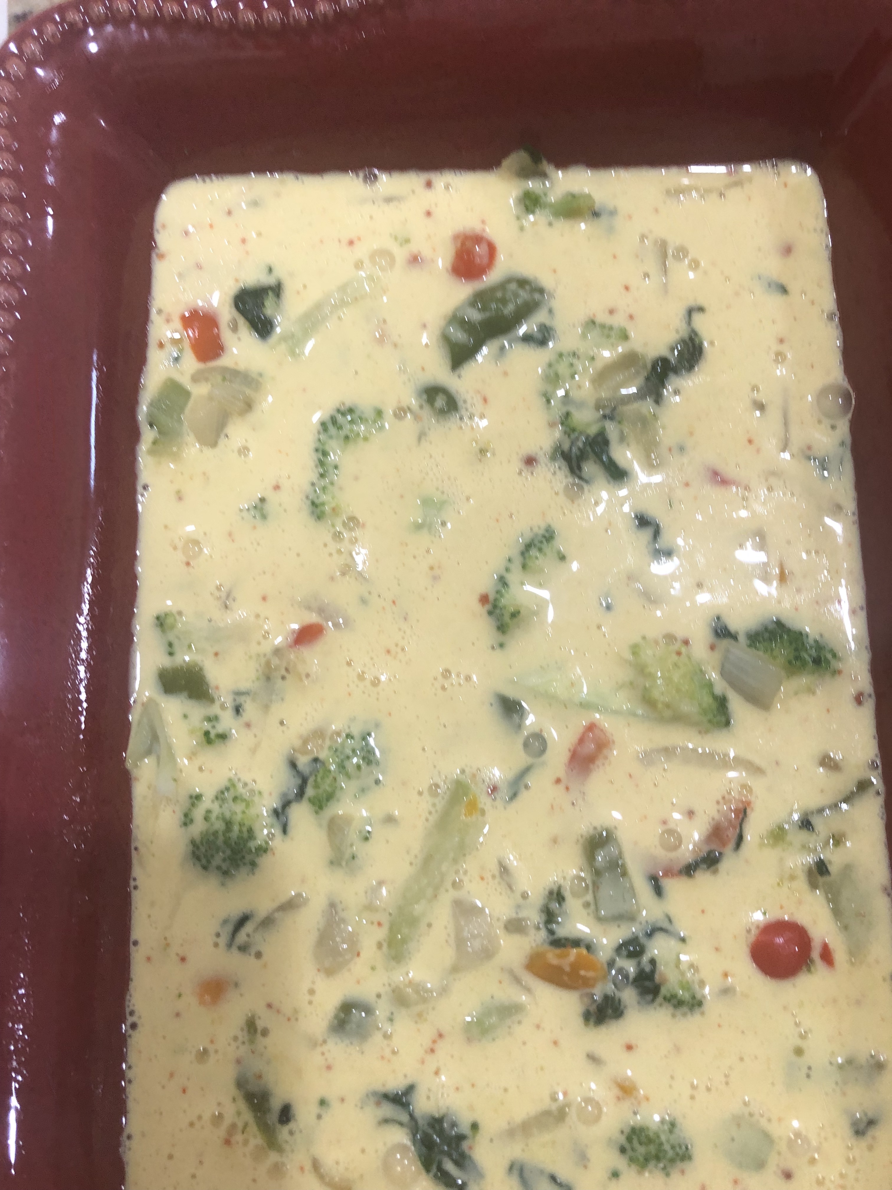 - pour just egg mix over vegetables