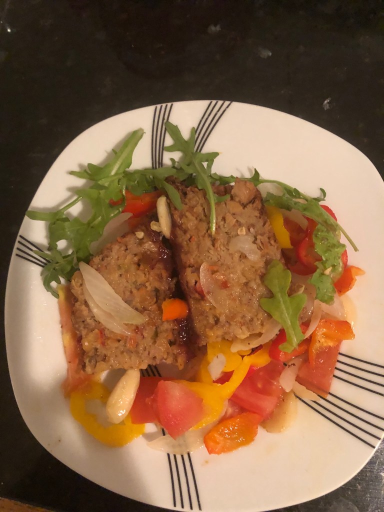 Meatloaf with sauteed onion, garlic, sweet pepper and tomatoes