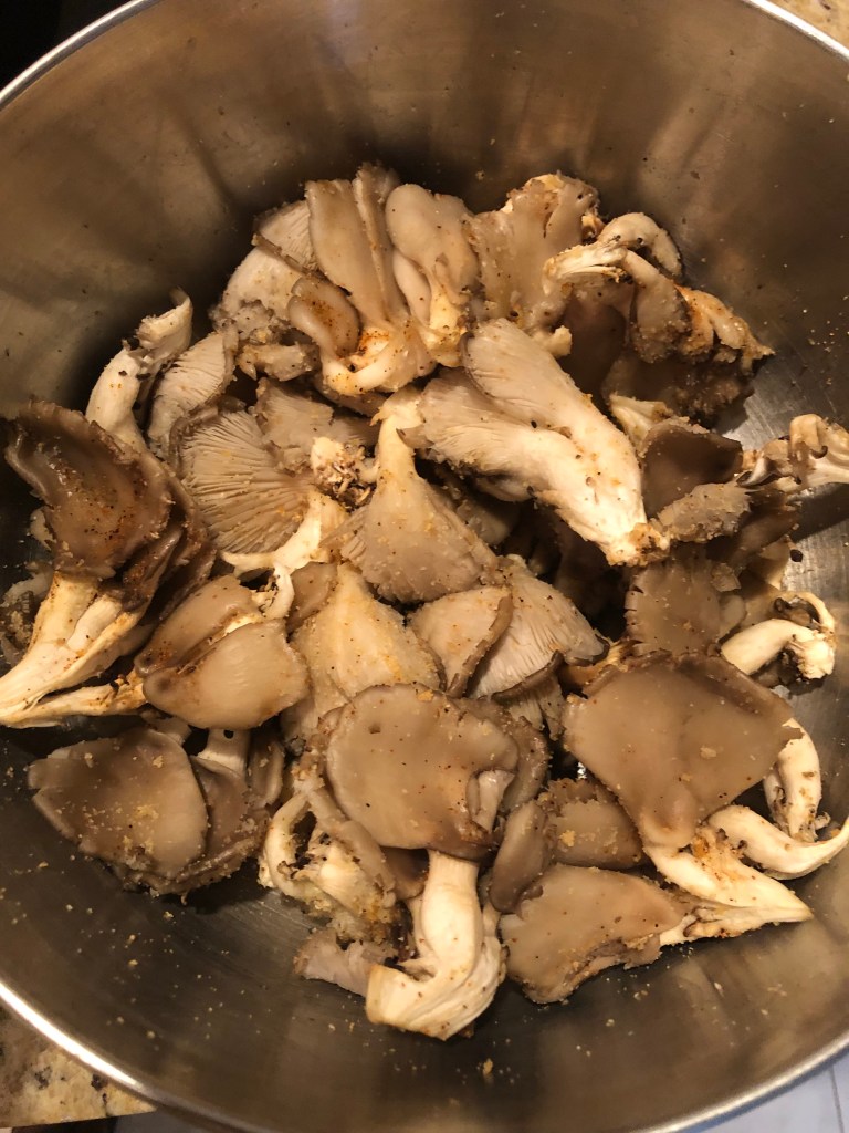 - On the 2/3 batch add salt to taste and enough water to make a thick batter to coat the mushroom without being runny